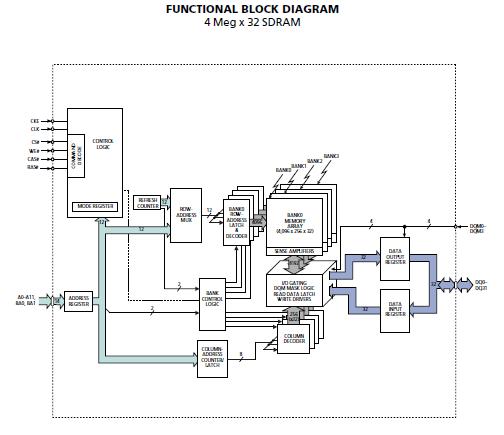 MT48LC4M32B2TG-7 IT:G features: (1)PC100 functionality; (2)Fully synchronous; all signals registered on positive edge of system clock; (3)Internal pipelined operation; column address can be changed every clock cycle; (4)Internal banks for hiding row access/precharge; (5)Programmable burst lengths: 1, 2, 4, 8, or full page; (6)Auto Precharge, includes CONCURRENT AUTO PRECHARGE, and Auto Refresh Modes; (7)Self Refresh Mode; (8)64ms, 4,096-cycle refresh (15.6μs/row); (9)LVTTL-compatible inputs and outputs; (10)Single +3.3V ±0.3V power supply; (11)Supports CAS latency of 1, 2, and 3.